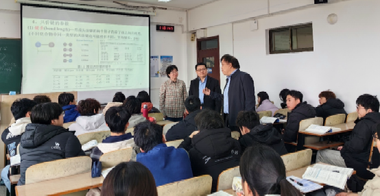 与此同时,学院党委书记姜永杰在浮山校区博文楼听取了由于正泽老师为24级化师专业开设的《化学与人生》课程,院长毕赛则在金家岭校区东院实验楼听取了韩松德老师为25级化师专业讲授的《无机化学-下》。