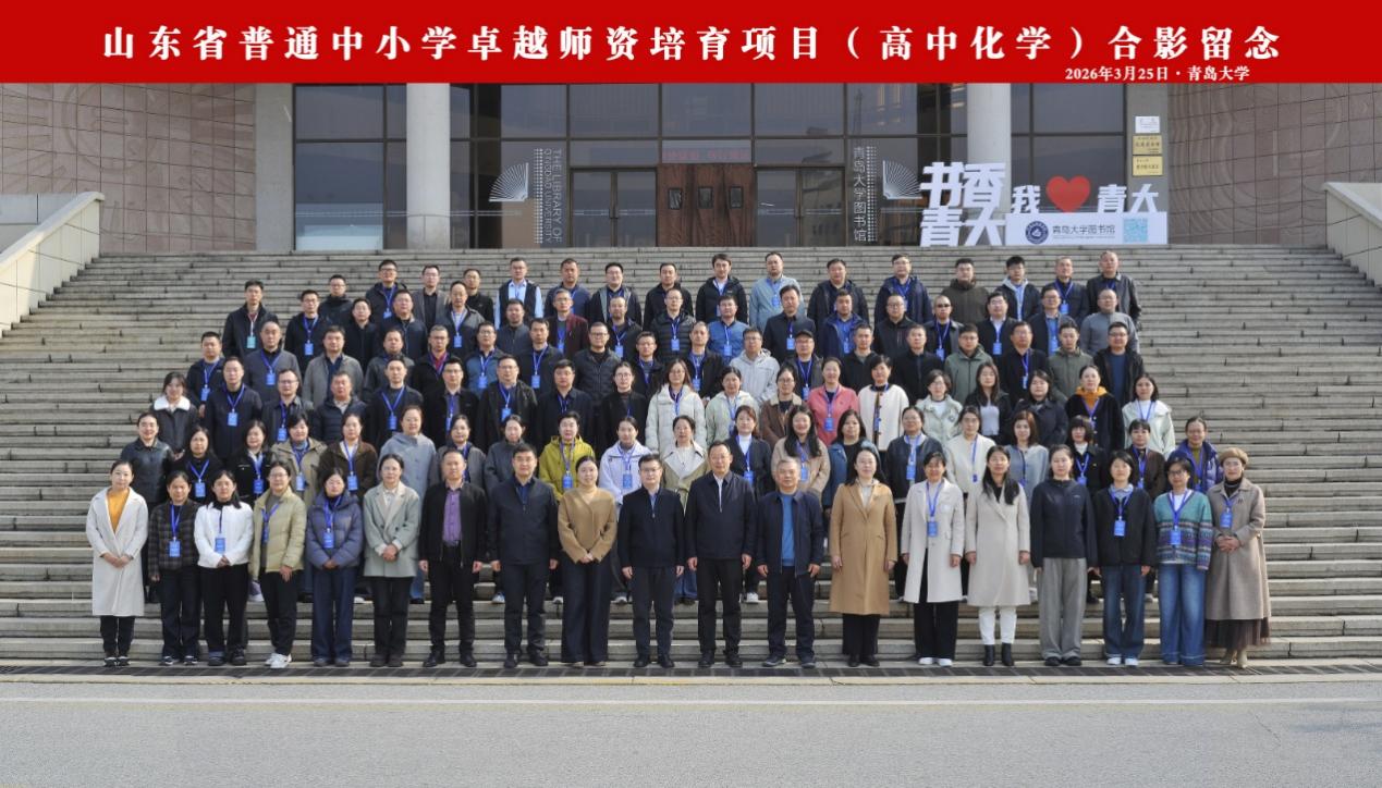 2026年3月25日,春意盎然的青岛大学校园内群贤毕至,由山东省教育厅主办、青岛大学化学化工学院承办的山东省普通中小学卓越师资培育项目(高中化学)开班仪式在会议中心隆重举行。青岛大学副校长刘恩贤出席仪式并致辞,青岛大学教务处、教育科学学院以及化学化工学院相关领导、学科领域专家及全体参训学员参加本次开班仪式。仪式由青岛大学教务处处长马泽刚主持。